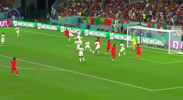 Phong cách tấn công điển hình của Hàn Quốc ở giải năm nay là những pha tạt cánh vào vòng cấm. Trong một lần thực hiện quả phạt góc, Hàn Quốc đã tìm được thứ mình cần. Xuất phát từ tình huống phạt góc của Hàn Quốc, bóng đập vào người Cristiano Ronaldo và hướng về khung thành.