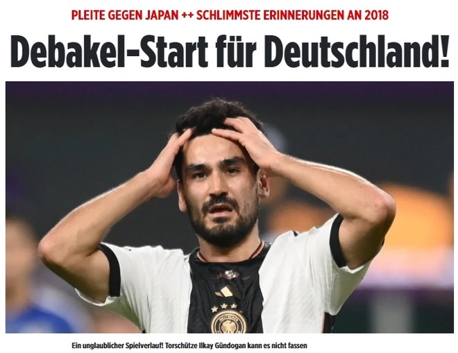 “Tuyển Đức khởi đầu bằng thất bại đáng kinh ngạc. Trận thua này gợi nhớ đến giải đấu cay đắng ở Nga năm 2018, nơi tuyển Đức thua Mexico 0-1 và lần đầu tiên bị loại ngay vòng bảng”, Bild mở đầu bài viết.