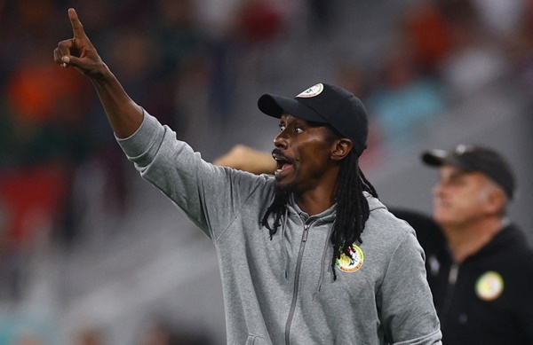 HLV Aliou Cisse với mái tóc nổi bật tại World Cup 2022. Ảnh: Reuters.