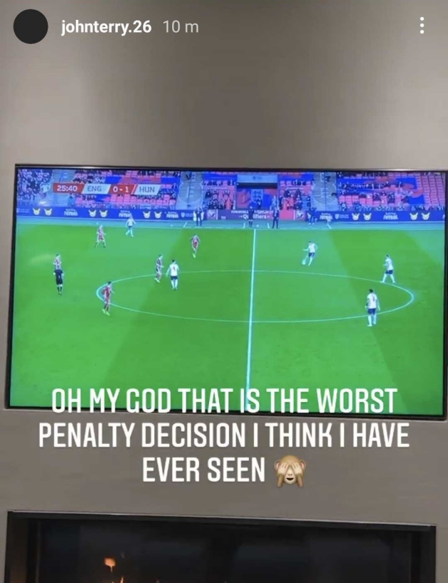 Quyết định gây tranh cãi của trọng tài thu hút sự chú ý của cựu sao tuyển Anh John Terry. Đăng tải trên story cá nhân ở Instagram, Terry thể hiện sự bất bình: