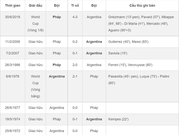 Ở đấu trường World Cup, Argentina và Pháp có 3 lần chạm trán nhau. “La Albiceleste” hai lần được hưởng niềm vui, trong khi “Gà trống Gaulois” có một chiến thắng.