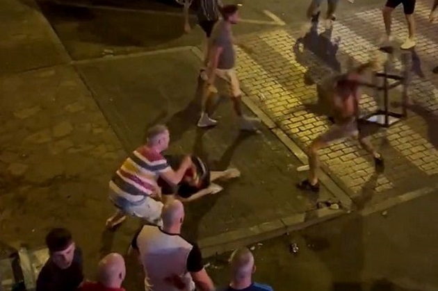 Đoạn phim được đăng lên mạng xã hội vào tối thứ Sáu cho thấy hai nhóm người đã lao vào nhau bên ngoài quán bar Revolution and O’Neill. Đoạn video chú thích: “Trước trận Anh vs Wales ở Tenerife”.
