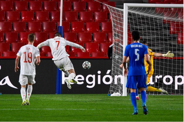 Sau một tình huống tuyển Tây Ban Nha giành lại bóng ở khu vực ngoài vòng cấm, tiền đạo thuộc biên chế Juventus đã thực hiện pha chạy chỗ cực kỳ thông minh để đón đường chọc khe bóng đến từ người đồng đội Koke.