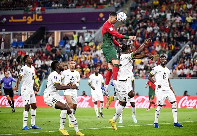 Chỉ 3 phút sau, cựu sao Real tiếp tục ghi dấu ấn. Trong tình huống phạt góc, Raphael Guerreiro chuyền đẹp mắt vào vòng cấm để Ronaldo bật cao đánh đầu. Anh loại bỏ được các cầu thủ Ghana nhưng lại đưa bóng đi ra ngoài.
