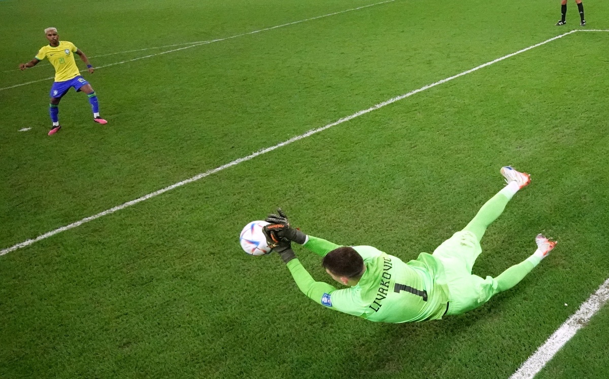 Trận tứ kết đầu tiên giữa Brazil và Croatia diễn ra vào tối 9/10 (giờ Hà Nội). Sau 120 phút bóng lăn, hai đội hòa nhau 1-1 và phải bước vào loạt đá luân lưu. Ở lượt đầu tiên, Livakovic đã phán đoán chính xác để cản phá cú đặt lòng của Rodrygo.