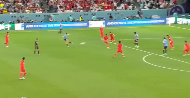 63′: Nunez thể hiện sự càn lướt bên cánh trái. Anh đi bóng dũng mãnh vượt qua 2 cầu thủ Hàn Quốc nhưng pha đưa bóng vào trong không thể đánh bại thủ môn.