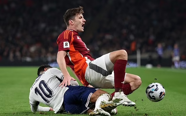 Bellingham có pha vào bóng mạo hiểm với Raivis JurkovskisMột pha sút phạt đẳng cấp của Reece James đã làm bừng sáng trận đấu thuộc vòng loại World Cup giữa Anh và Latvia. Harry Kane và Eberechi Eze lần lượt ghi bàn để ấn định chiến thắng 3-0 sau khi Jude Bellingham rời sân.