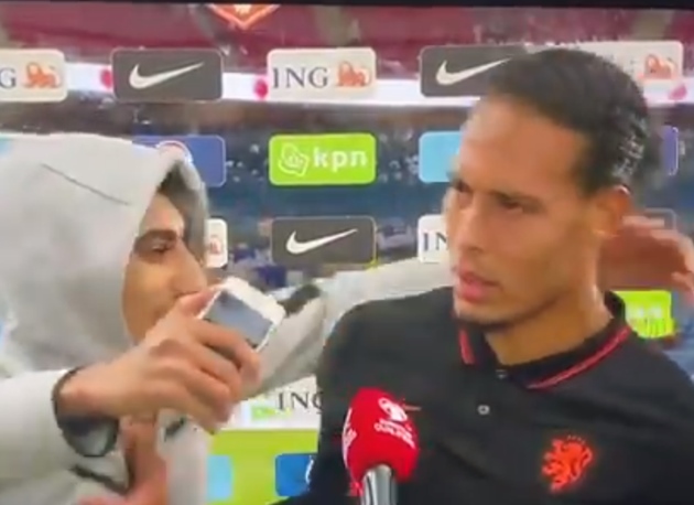 Van Dijk có lẽ cũng có cùng tâm trạng với đồng đội. Trong phần phỏng vấn sau trận, 1 CĐV đã chen ngang với ý muốn chụp ảnh cùng trung vệ thuộc biên chế Liverpool. Ống kính camera ghi lại cảnh Van Dijk nhăn nhó không hài lòng và đẩy fan hâm mộ này sang 1 bên.